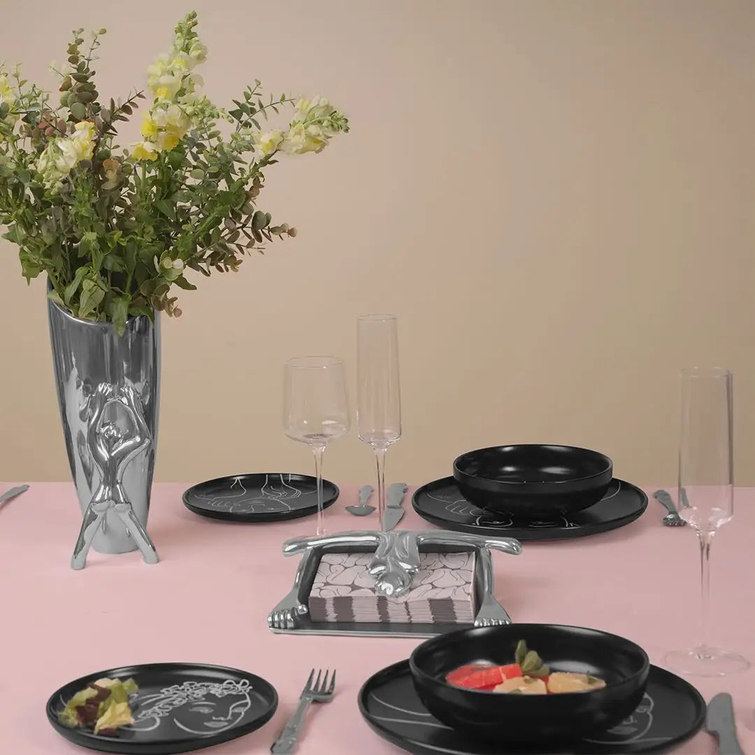 Introducing our Take A Bow serviette holder, crafted in elegant aluminium for a sophisticated touch to your dinner table. Keep your napkins neatly organized and add a touch of luxury to any meal. Bow down to style and functionality with this exclusive piece.