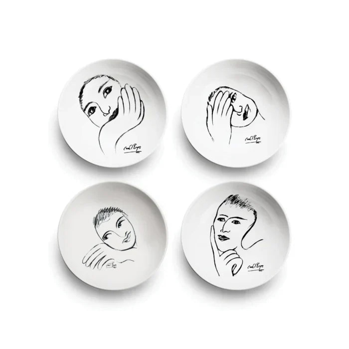 Introducing the Sketchbook Mixed Set - a heritage soup/cereal bowl set of 4. Each bowl features one of Carrol Boyes' signature hand-drawn figures, including Face Facts, Let's Face It, Distant Memory, and Just a Minute. Designed for everyday use, these bowls will add a touch of sophistication to your dining experience. Microwave and dishwasher safe for convenience.